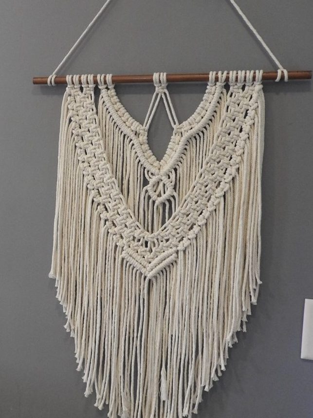 Made from natural cotton cord, this piece features flowing, wave-like lines and layered shapes that create gentle movement and texture. The open design and cascading fringe evoke the rhythm of the tide, while the warm copper pipe adds a subtle, sun-kissed glow with a modern edge.